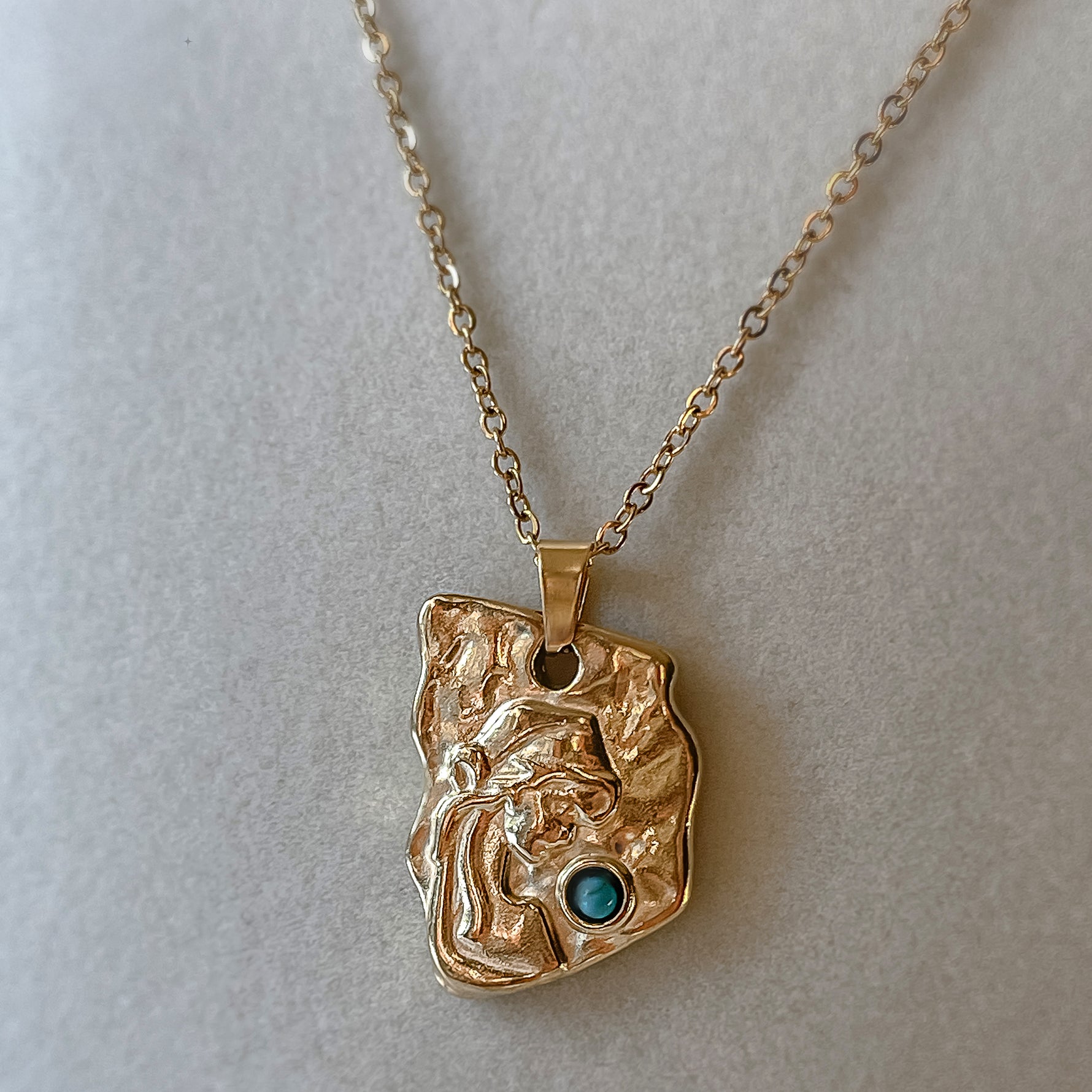 Isola Gold Face Pendant Necklace With Turquoise Stone