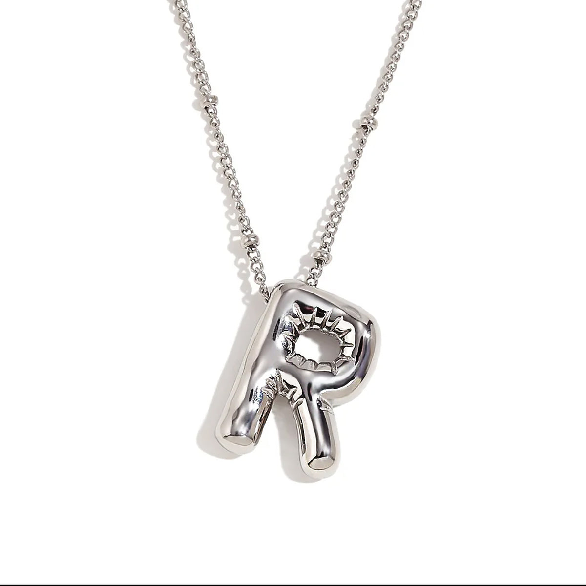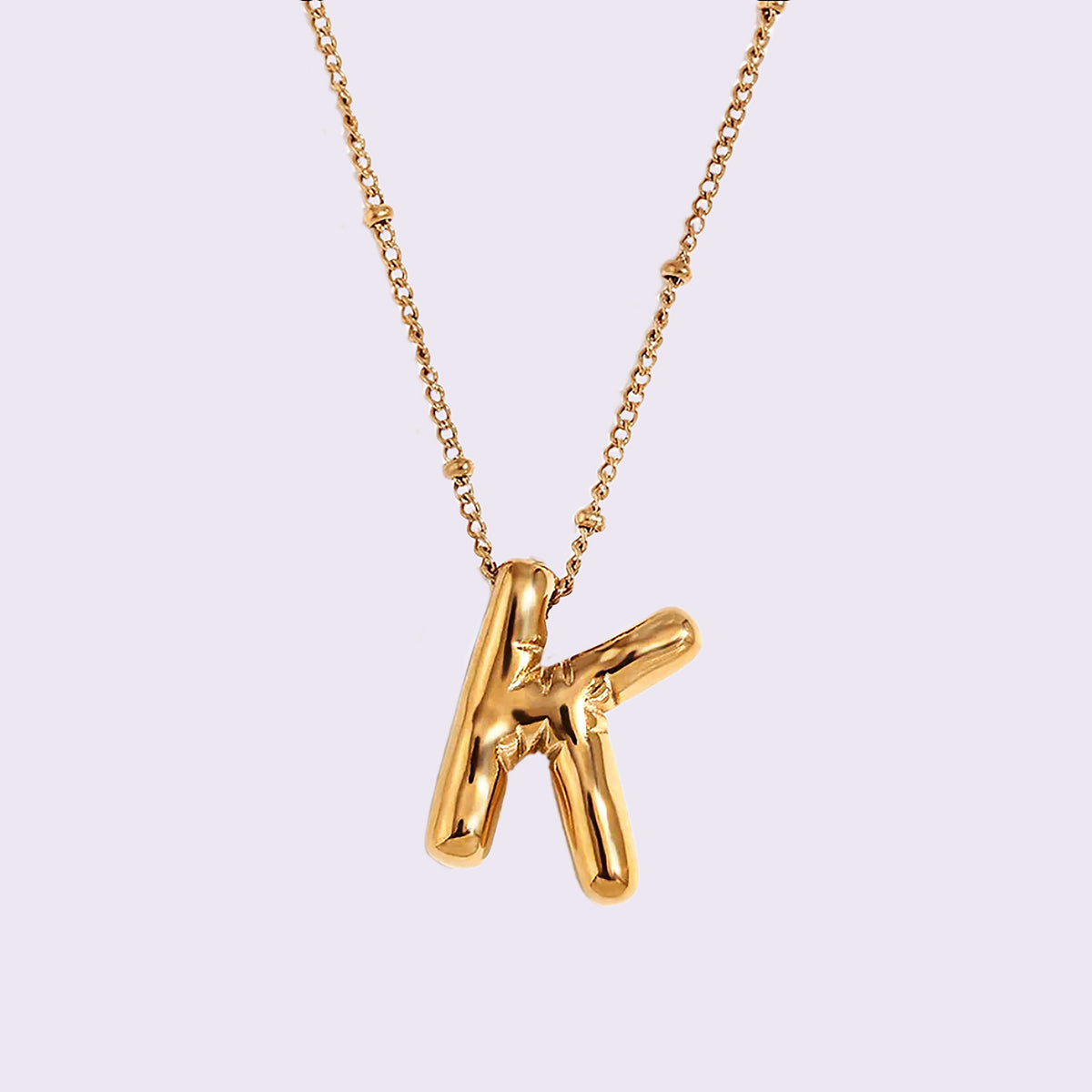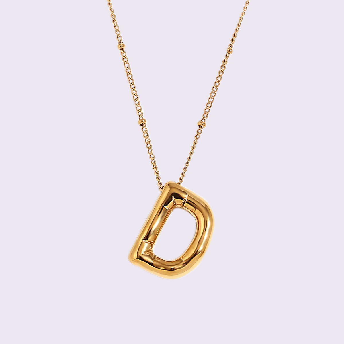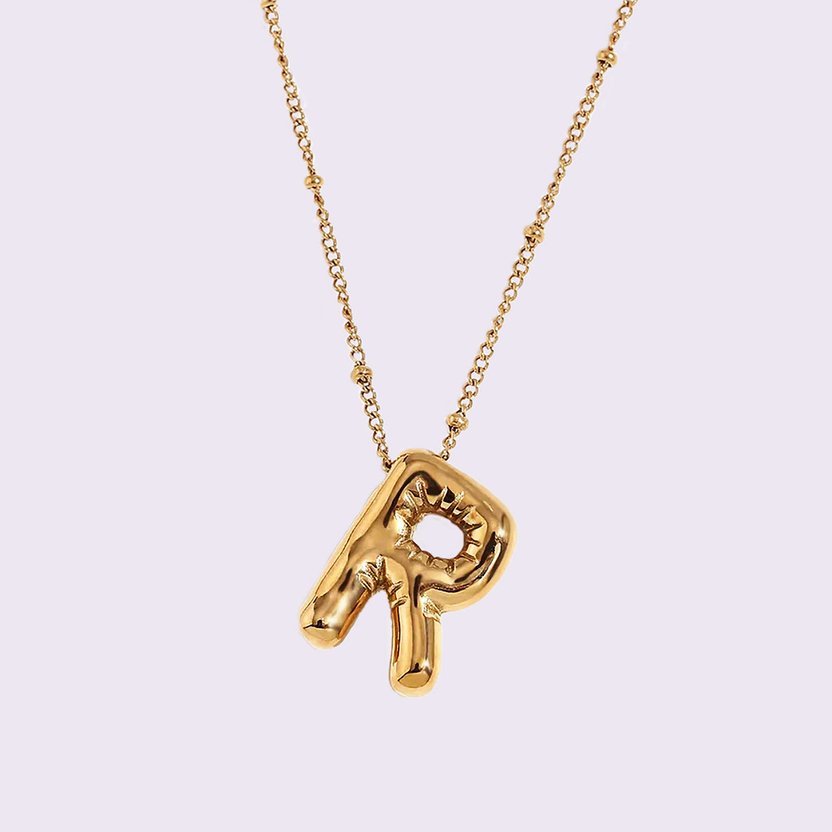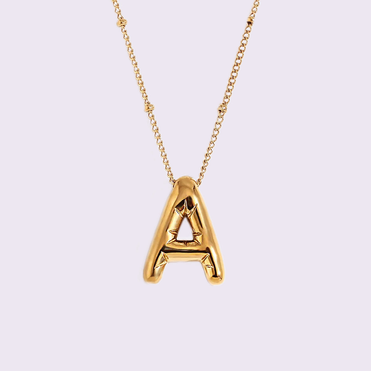 – Balloon-style 3D letter pendant with a fun, puffy shape