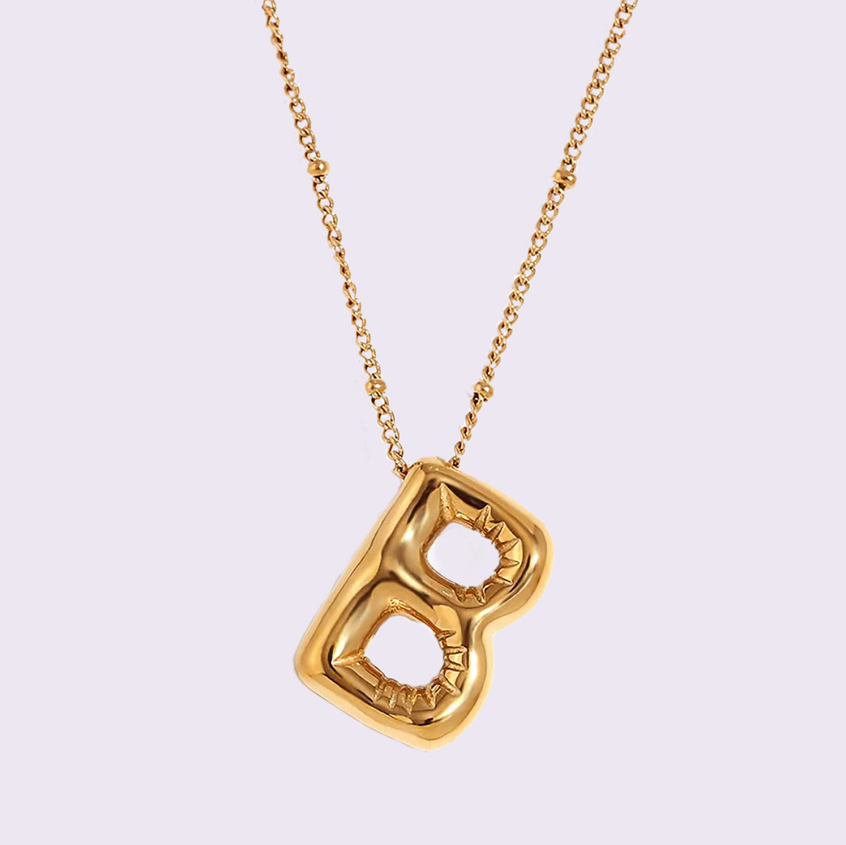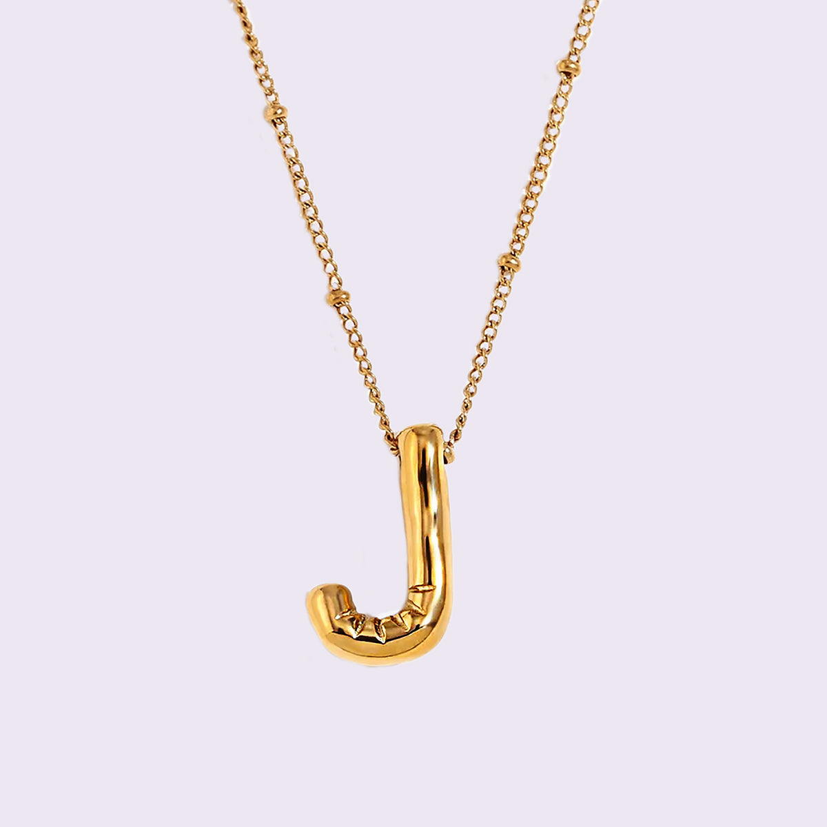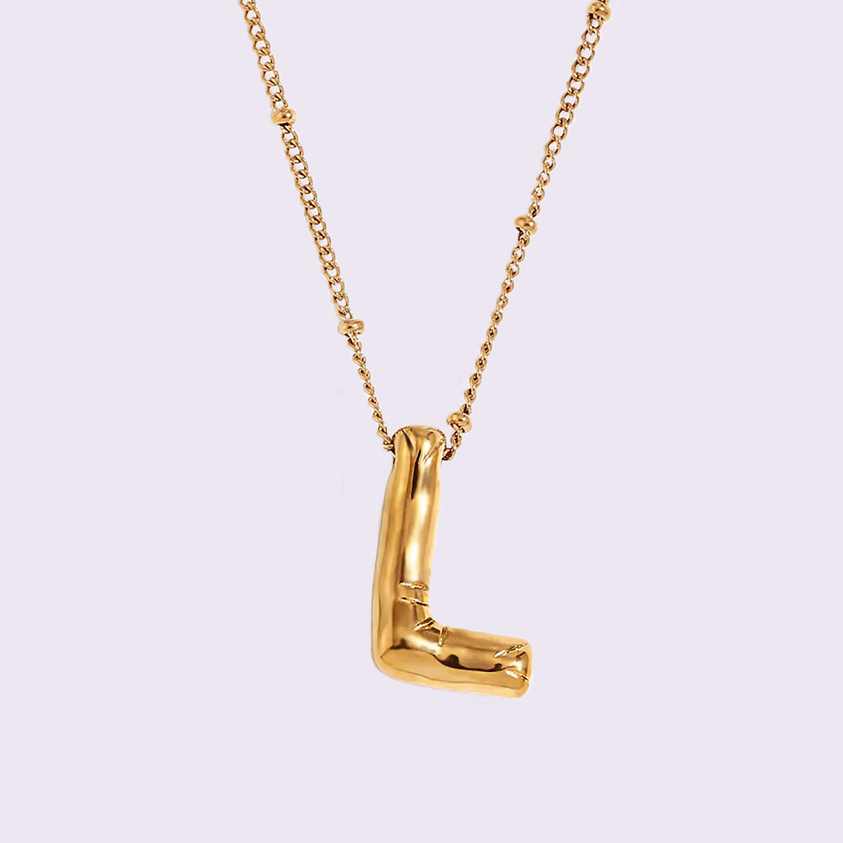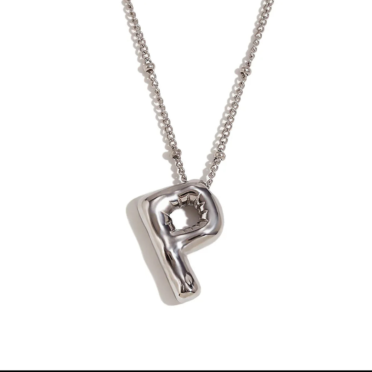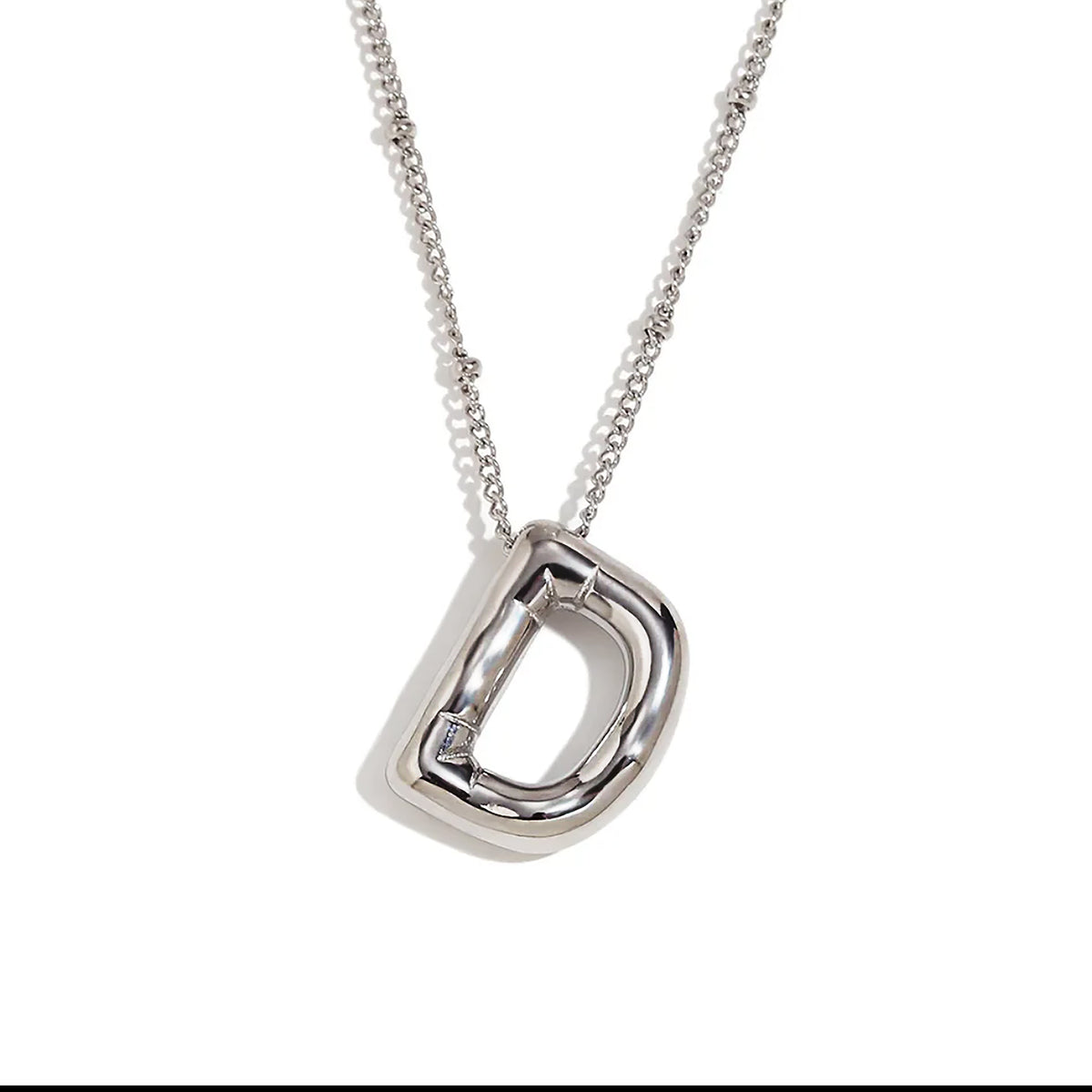 – Balloon-style 3D letter pendant with a fun, puffy shape