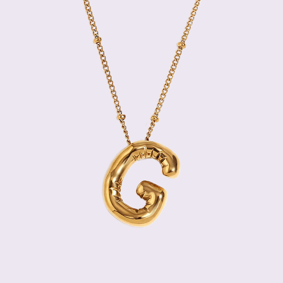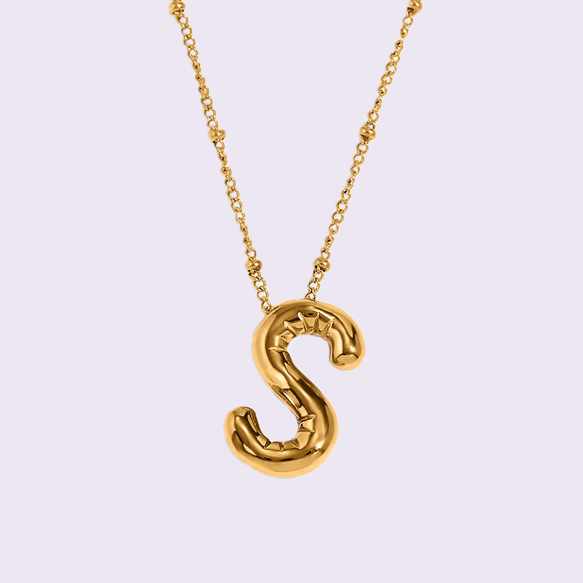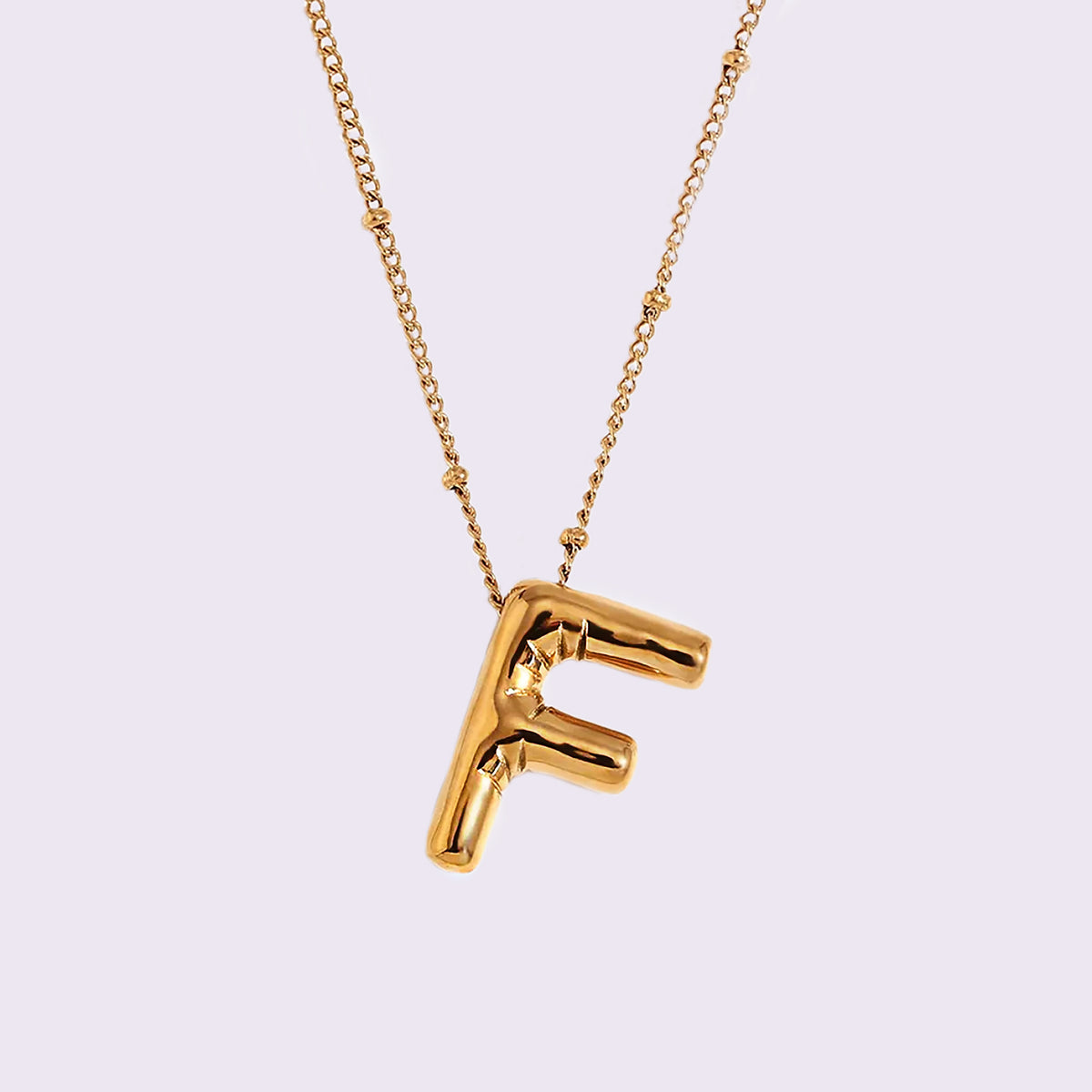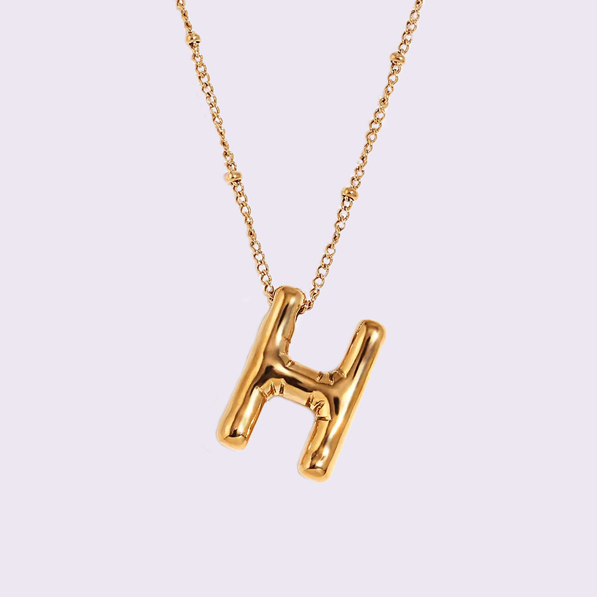 – Balloon-style 3D letter pendant with a fun, puffy shape