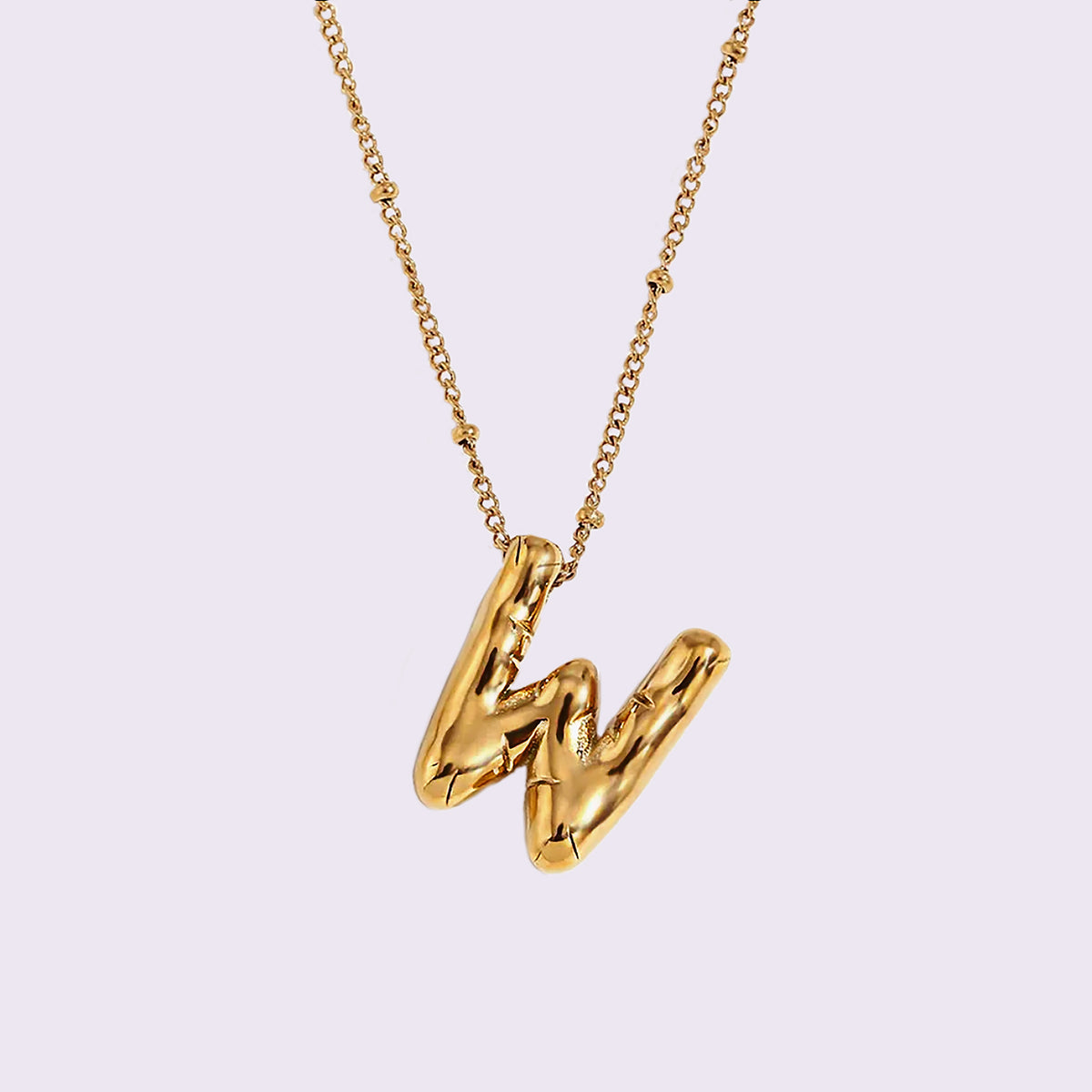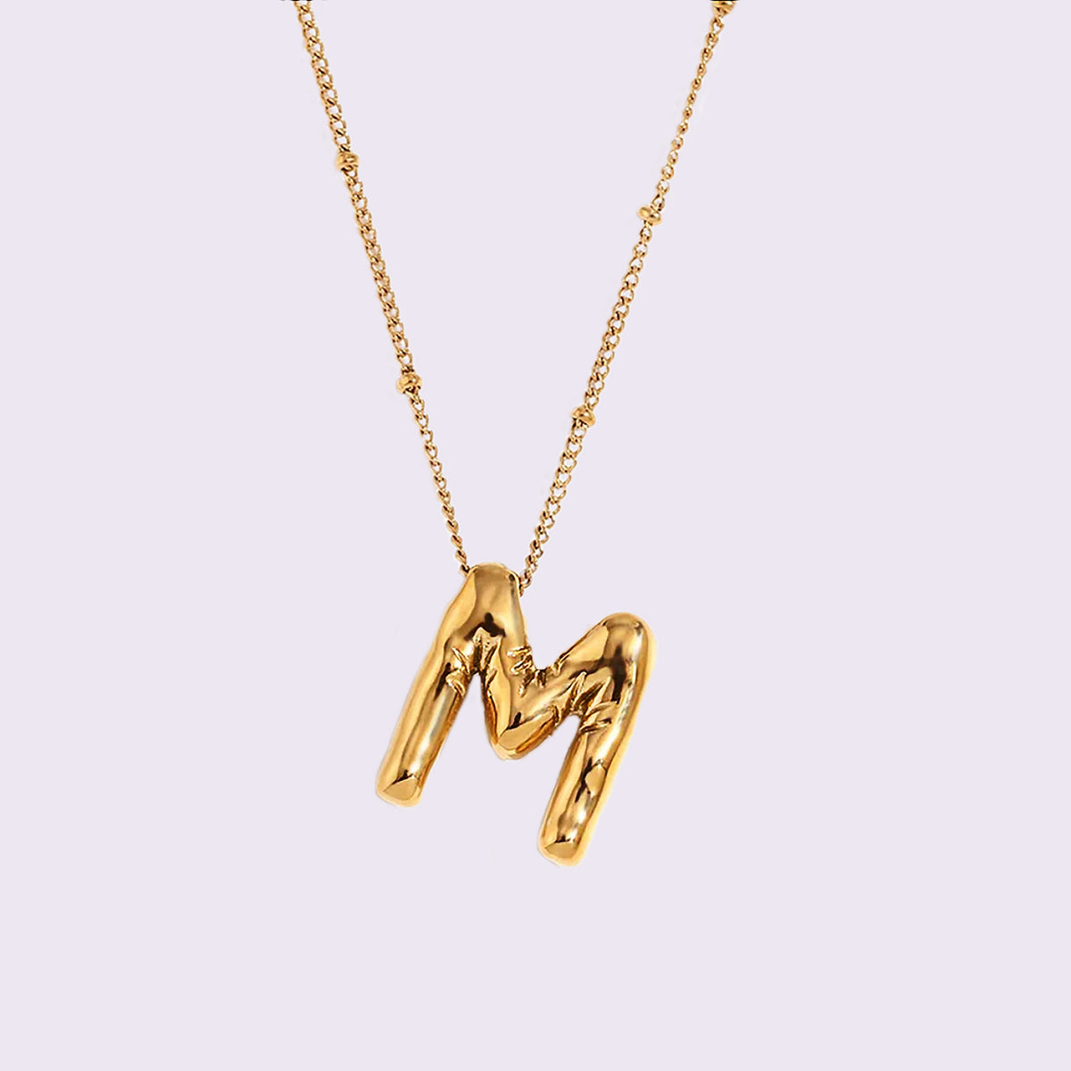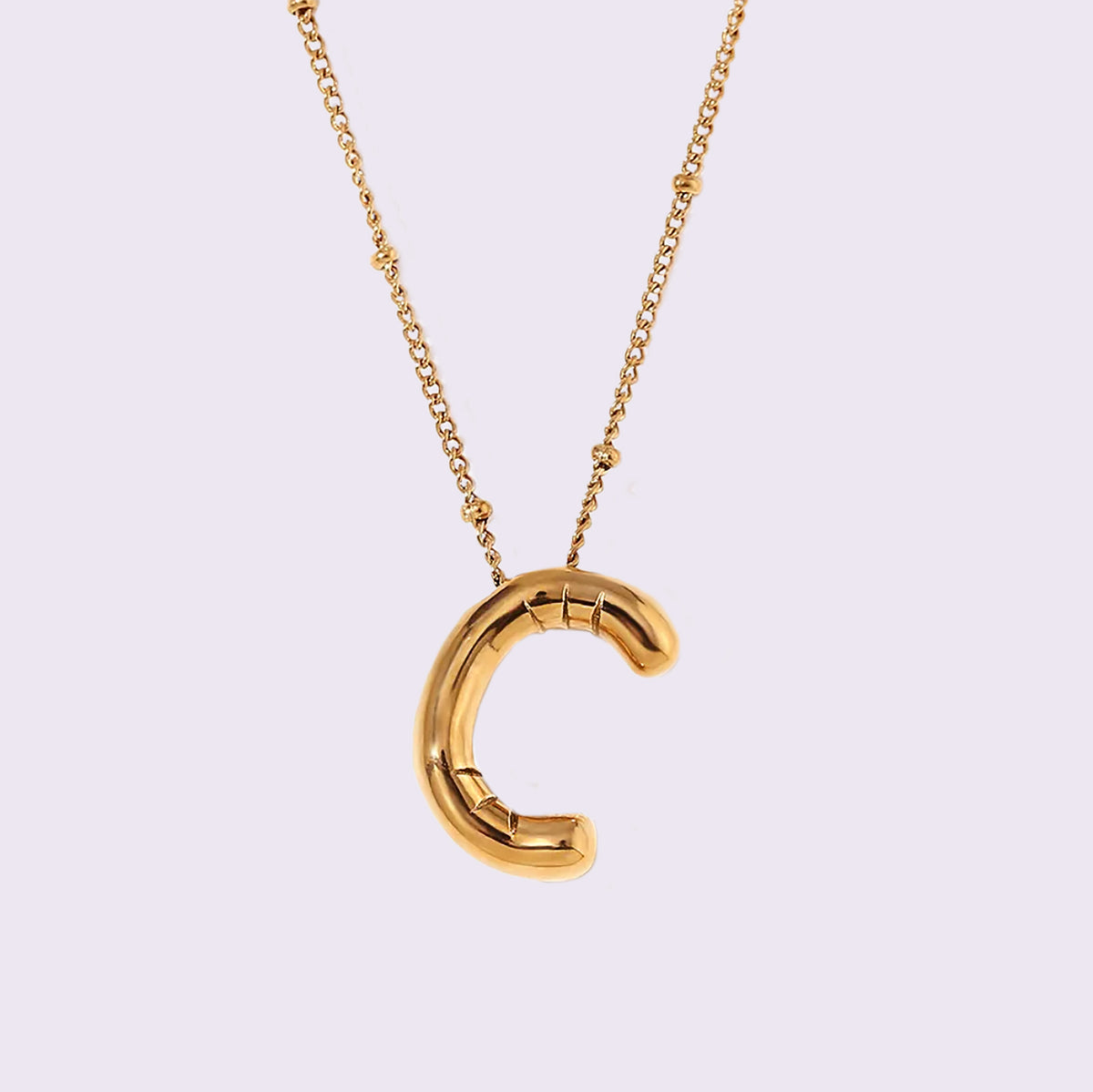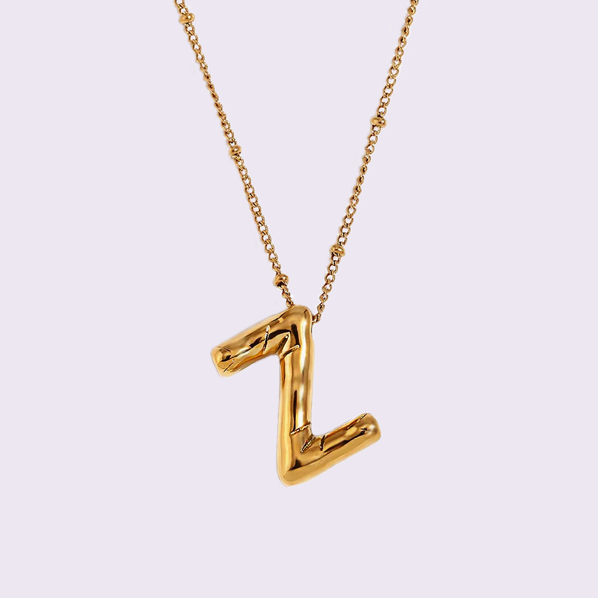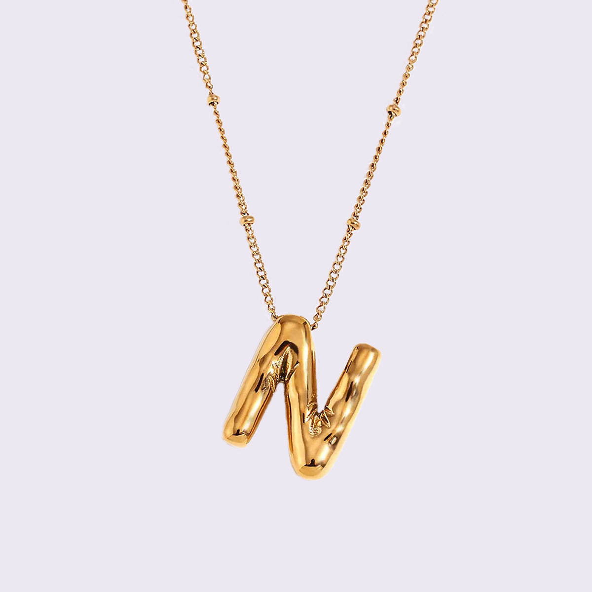 – Balloon-style 3D letter pendant with a fun, puffy shape