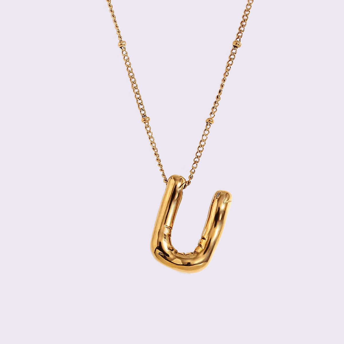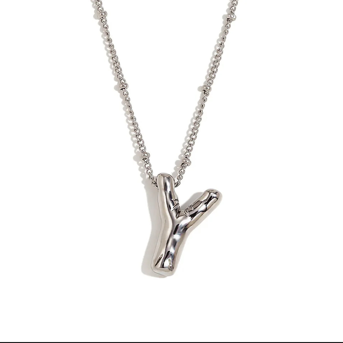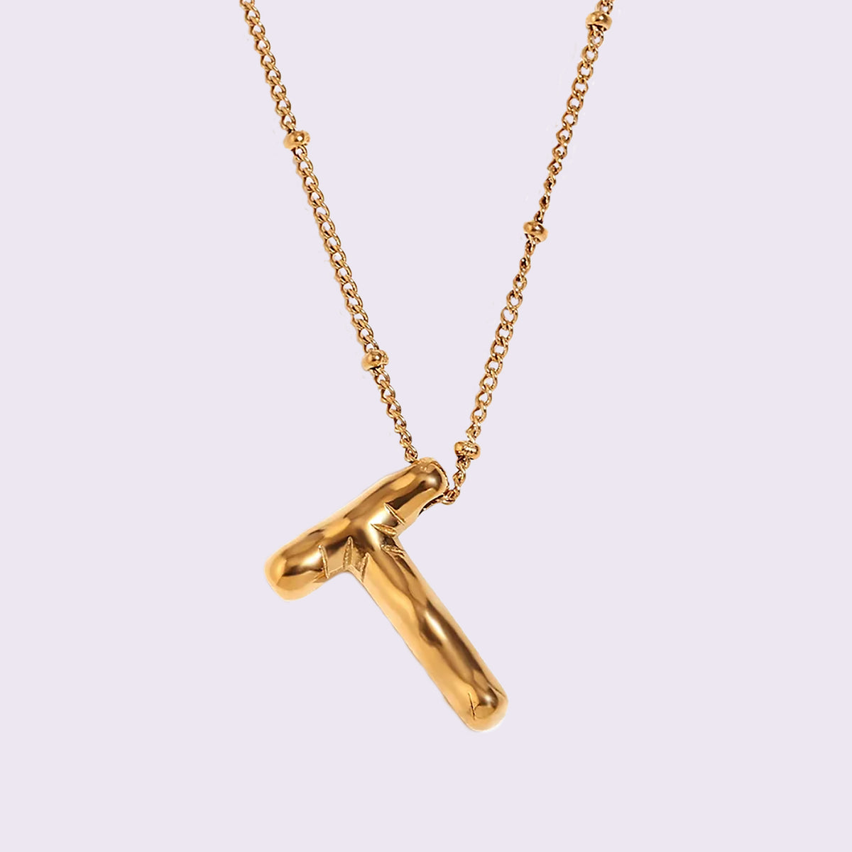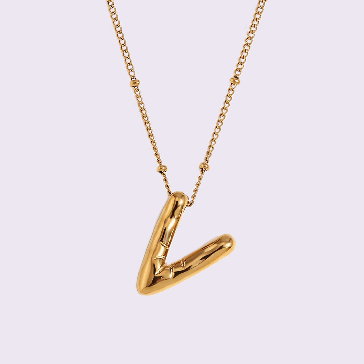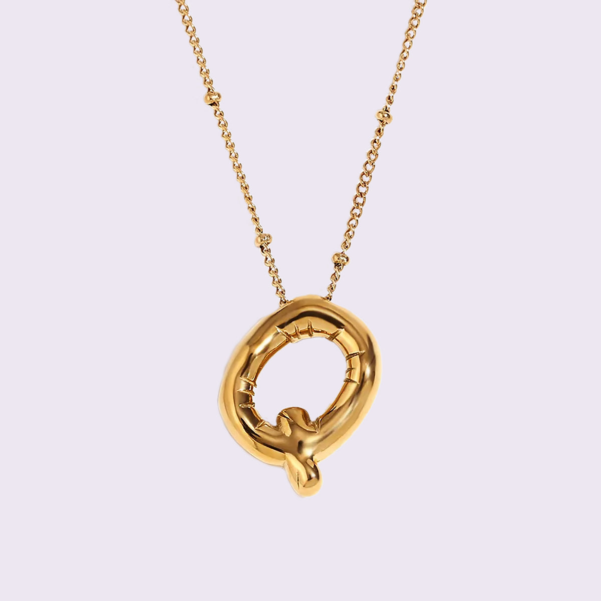 – Balloon-style 3D letter pendant with a fun, puffy shape
