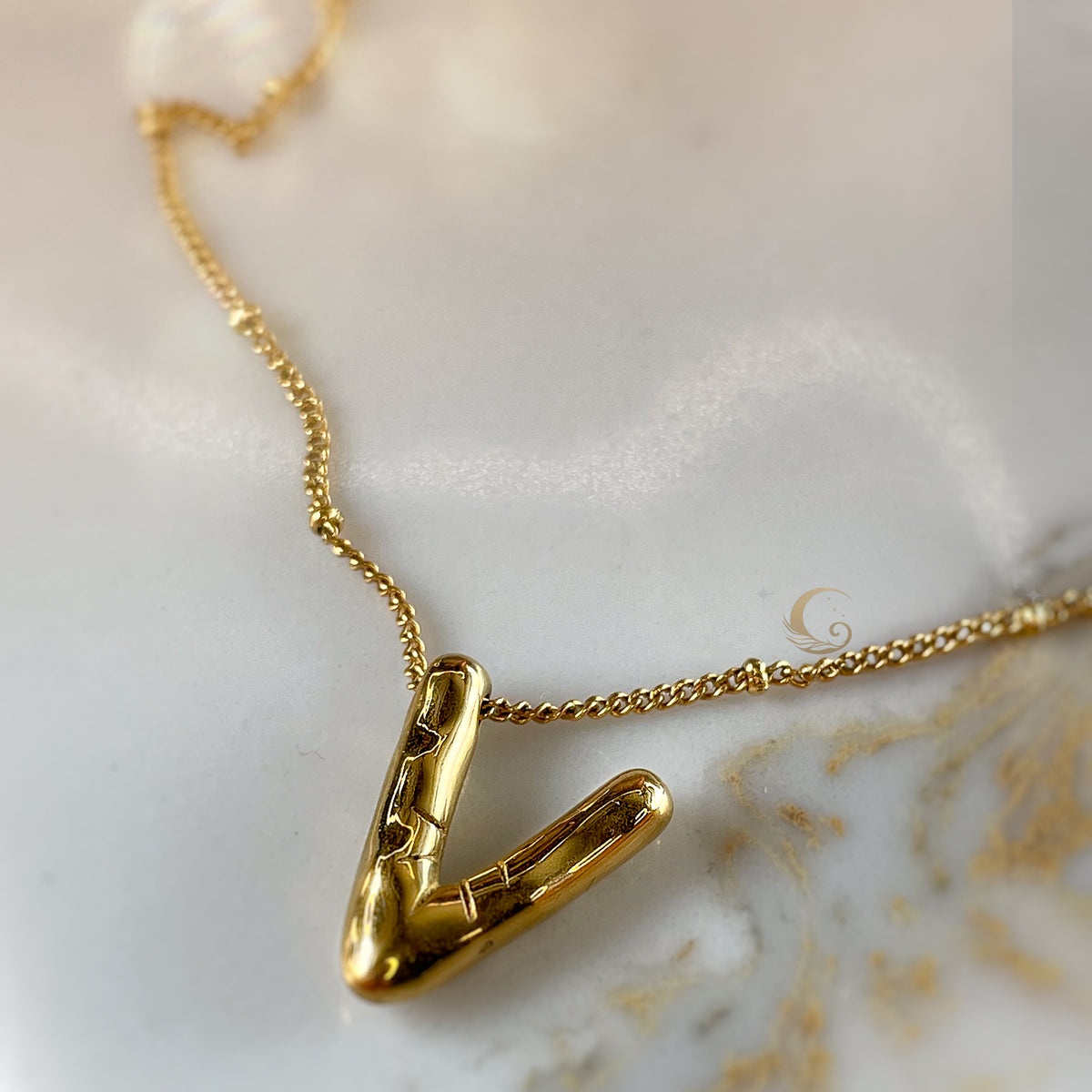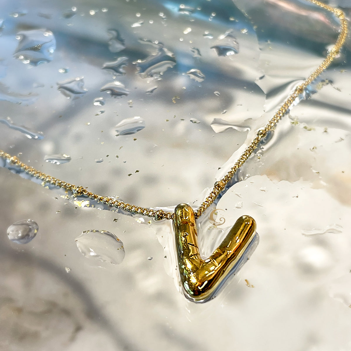 3D Balloon Letter Necklace, Gold and Silver Color.